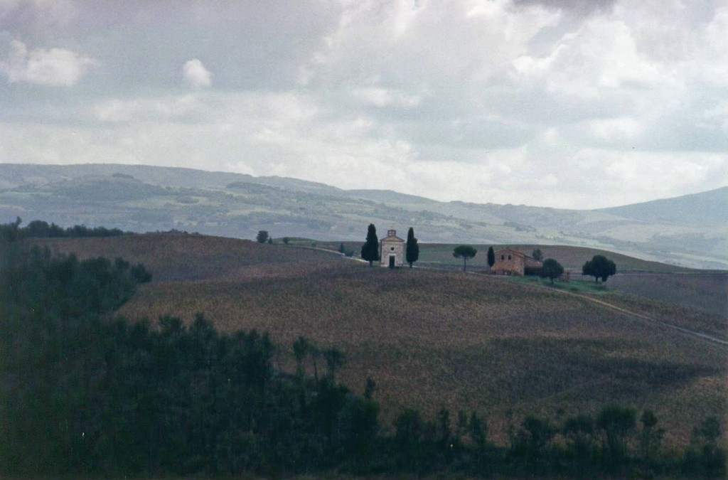 Leaving San Gimignano and driving towards Rome, we went by Pienza and passed this chapel which is much photographed and appears in many calendars featuring Tuscany. |