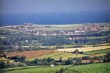 Looking towards Whitby, with the ruins of its abbey on the cliff top.