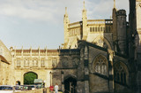 To the right were lodging houses for visiting clergy. The ornate bridge allowed them to get to the cathedral without being exposed to the sinful temptations of the city of Wells.