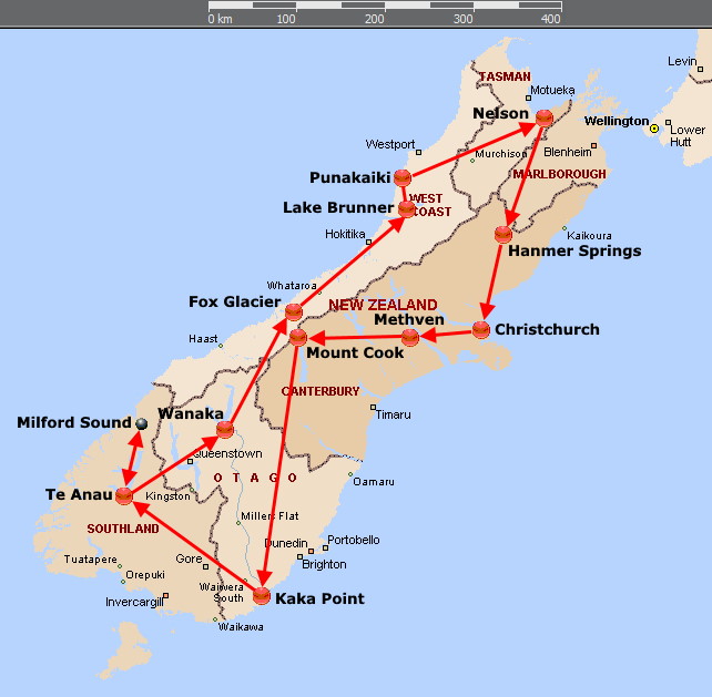 In March-April 2015, we spent just over three weeks on the South Island of New Zealand, travelling around and having some time with Nick's sister in Nelson. These are the places we visited (click on the map for a larger version): We landed at Christchurch shortly after 3 p.m. and drove the short distance to Methven.