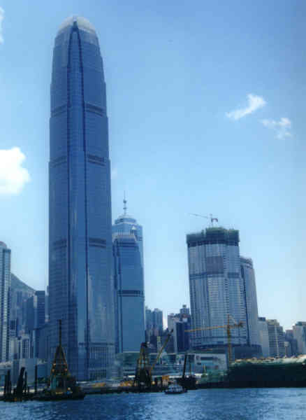 This is, for the moment, the tallest building in Hong Kong. It looks fairly phallic by day, but at night the tip is lit up more brightly than the rest of it, and the effect is strikingly vulgar.