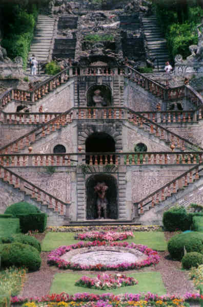 At Collodi, east of Lucca, is the Villa Garzoni. The villa is being repaired and is not open to the public, but in any case the best feature is the steeply terraced garden dating from the late 18th century. |