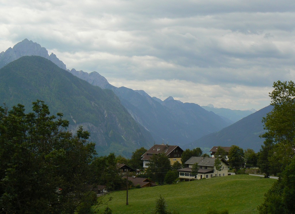 Driving from Bolzano to Hallstatt, we stopped for lunch near Lienz, at a roadside restaurant with great views over the Dolomites. † |