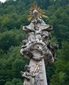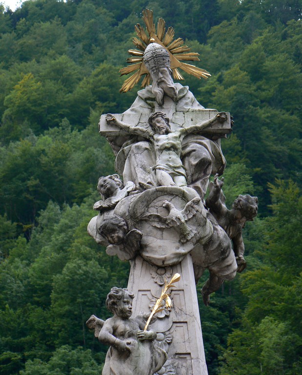 Closeup of the top of the fountain, which appears to show a Pope blessing Jesus. † |