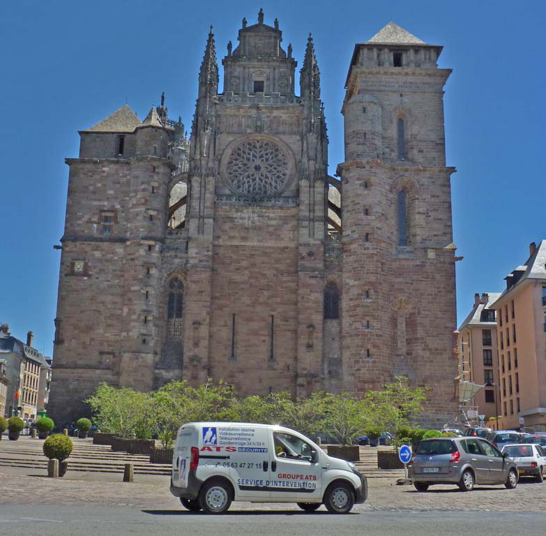 We stopped for lunch in Rodez, eating at a café on the square facing the cathedral. † |