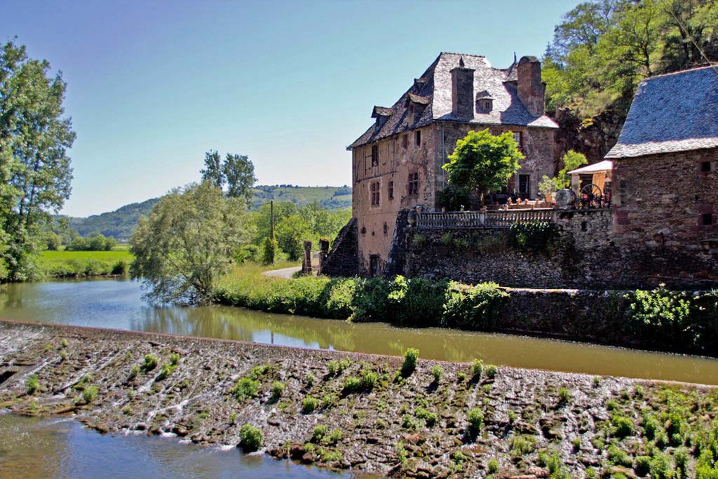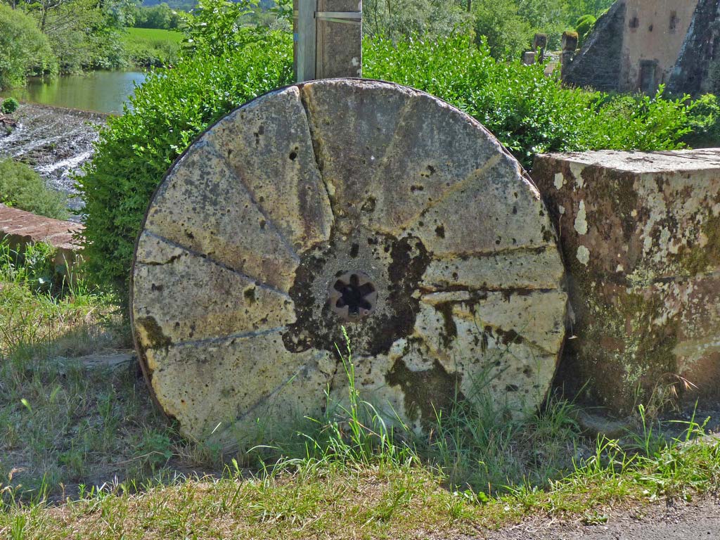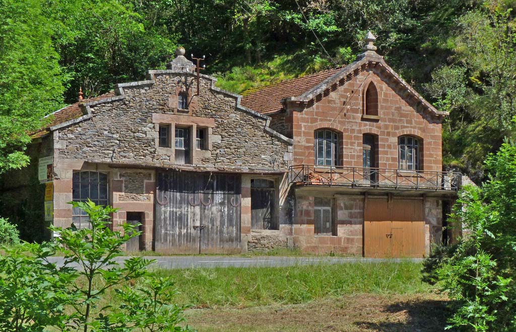 The last part of the road into Conques follows the valley of the Dourdou. We stumbled upon an old mill complex by the river. One of the buildings was still used for making flour, although now powered by electricity rather than water. † |