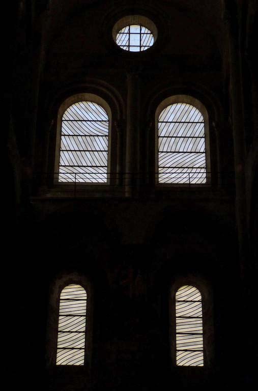 The windows are interesting: they look similar to alabaster, but are actually very restrained stained glass. † |