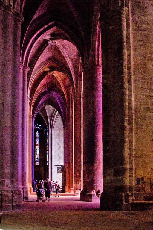 The side nave of Rodez cathedral, lit by rather unpleasant modern glass. * |