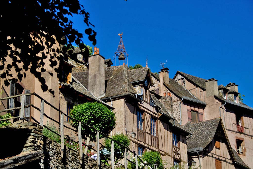 Main street of Conques, with the bell of the old Hôtel de Ville. * |