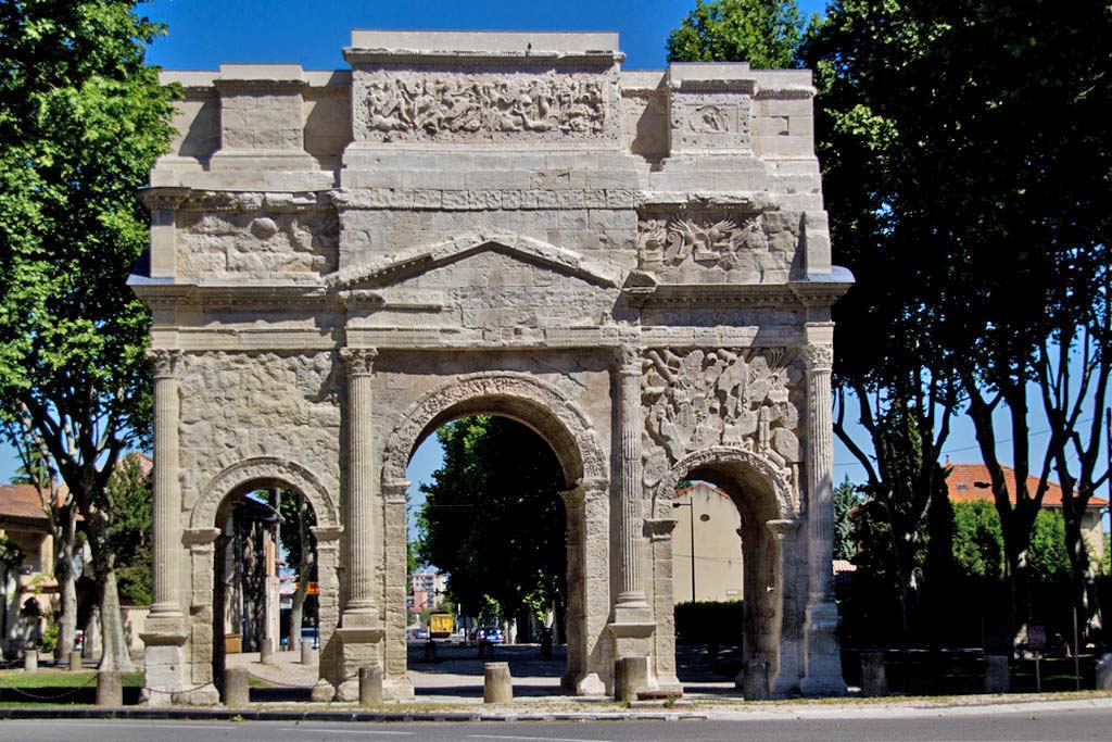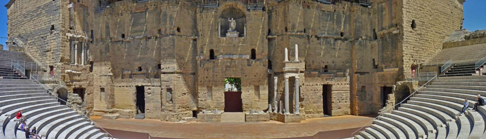 The stage of the Roman Arena in Orange, again rather distorted by the panorama photo. † |