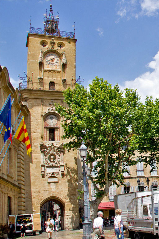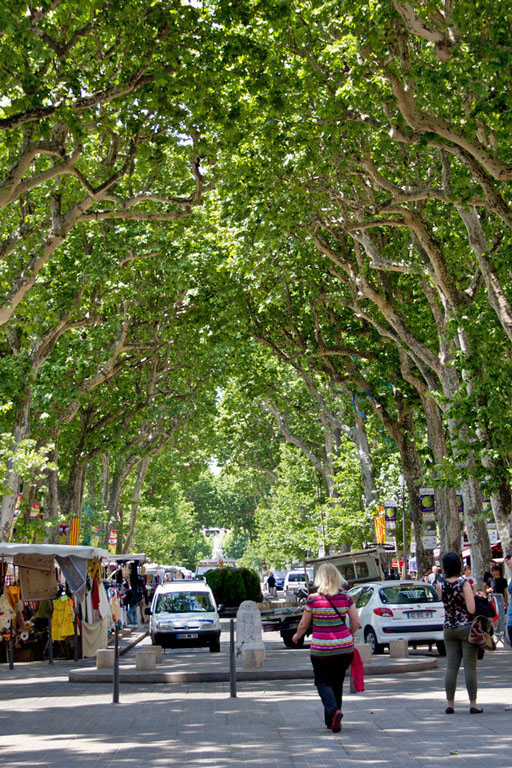The pretty Cours Mirabeau, the main street of Aix. Beyond the trees on each side, there are shops and restaurants, and we had lunch at one of the restaurants. * |