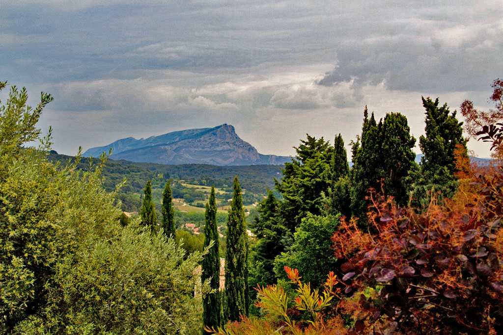 We drove out of town, looking for the field where Cezanne had painted many views of Mont St Vitoire. Lynn walked up the hill, seeing no view and cursing the houses in the way. Then she turned round... * |