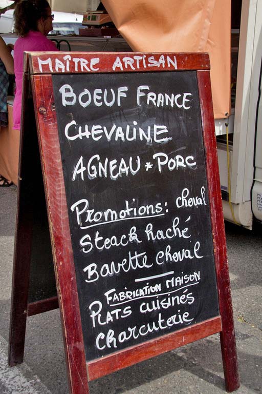 The top part of the sign reads: "French beef, horse, lamb, pork". A wide range of fresh meat. * |