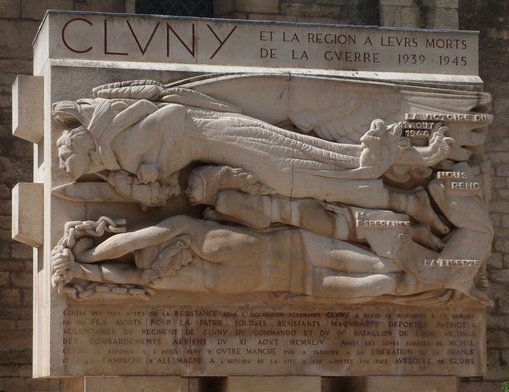 Between Lyon and Dijon, we detoured to visit Cluny. This was the war memorial in the main square of the village, looking remarkably similar to Oscar Wilde's tombstone in the Père Lachaise cemetery in Paris. † |