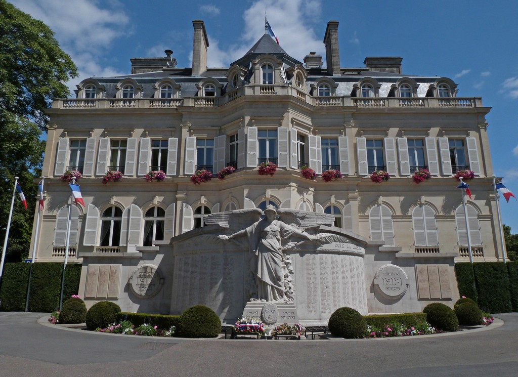 This is the Town Hall (Hôtel de Ville) with the War Memorial in front. † |