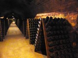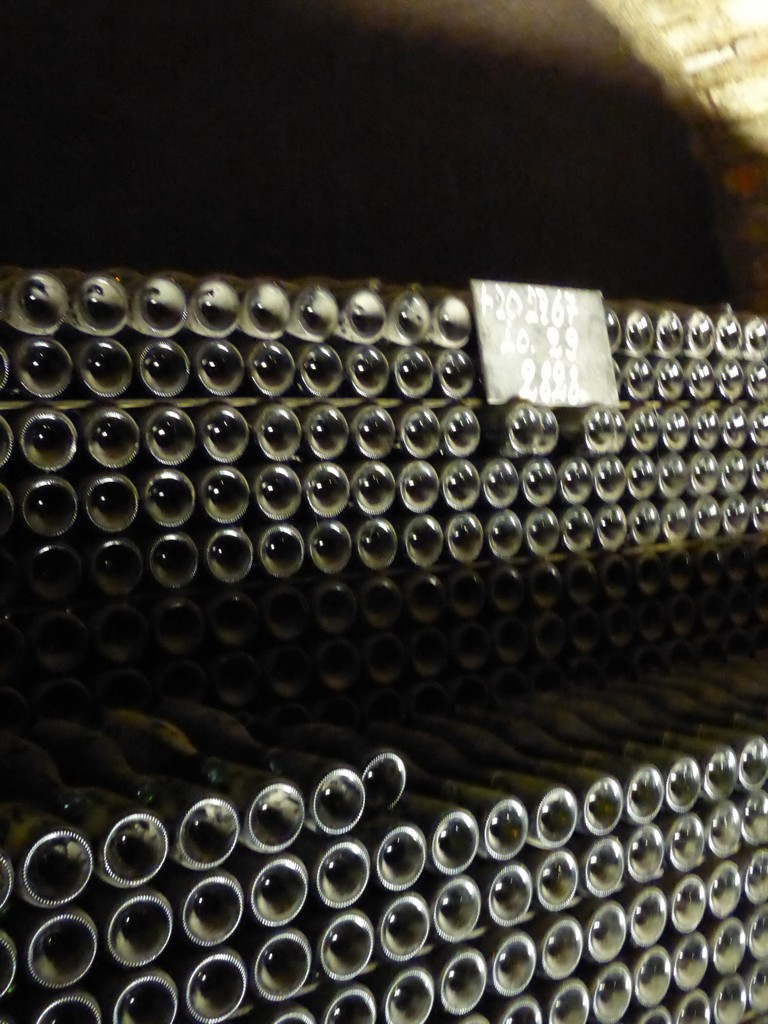 The racks used for the process of riddling by hand: rotating the bottles so that the spent yeast falls to the neck. * |