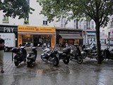 The next day, we had arranged a Paris Street Art walk, meeting near Parmentier Métro station in this rather damp square. There are photos of some of the art work here. |