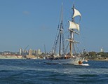 Sailing back to Sydney, the boat stayed some distance from land, and there was really no opportunity for photography until we got into Sydney harbour. This tall ship was heading under the Bridge. * |