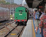 Not long after we arrived at Central, engine 3642 came into the station, tender first, pulling its train. † |