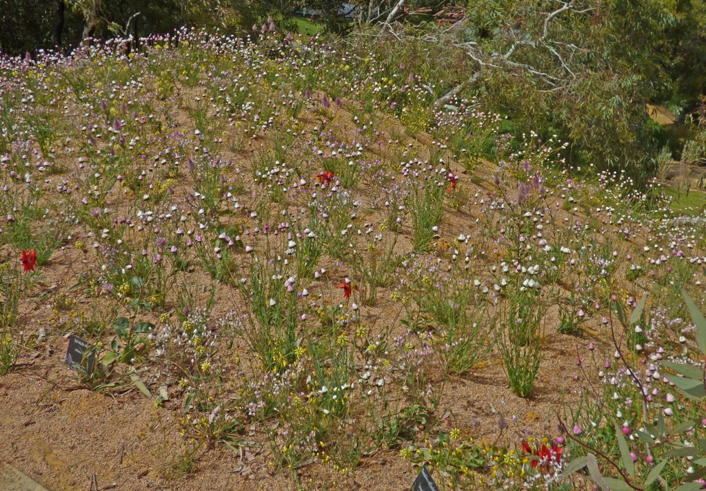 Arriving in Perth, we had some time to kill before meeting the owner of the apartment where we would stay, so we paid a short visit to the Botanic Garden in King Park. After failing to find everlasting daisies anywhere in the bush, there was a display of them in the middle of Perth. † |