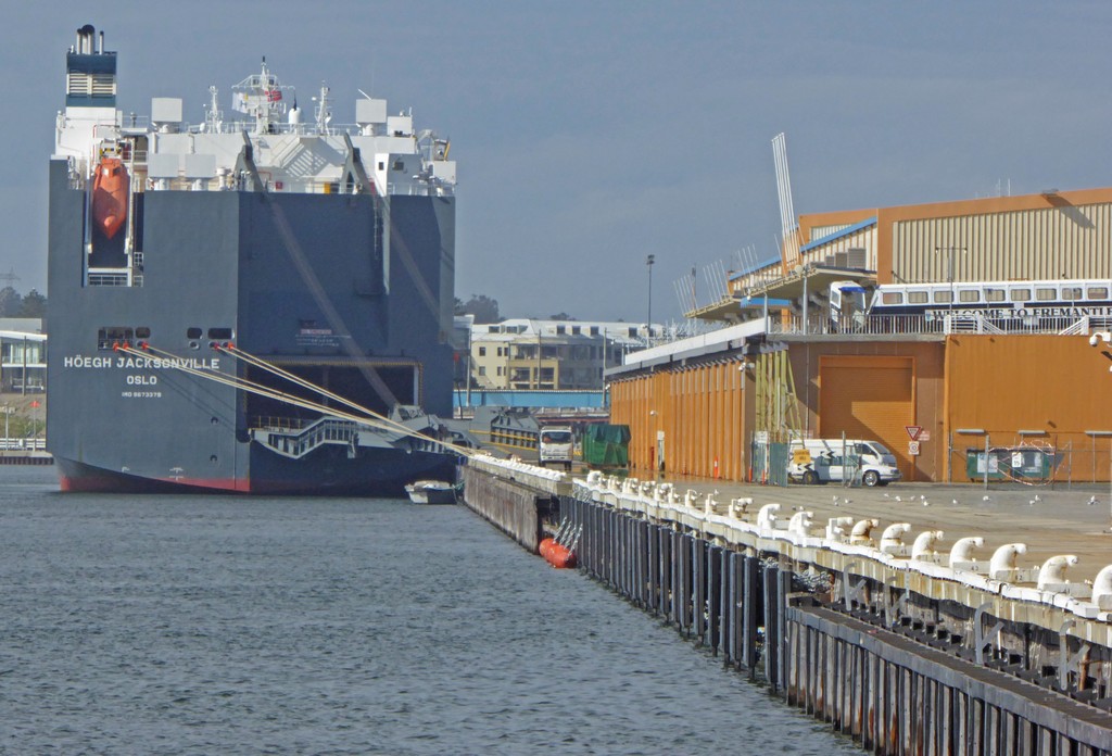 We found that a boat would be leaving shortly for a cruise along the Swan River to Fremantle and back, so we decided to take the trip. This was a huge car carrier that had just arrived in Fremantle. * |