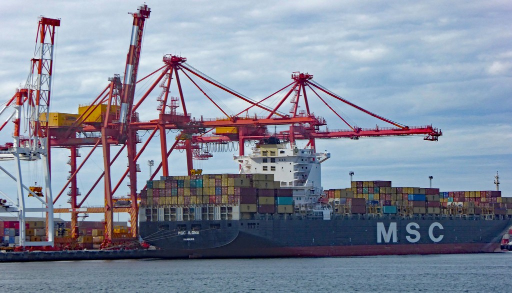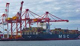 Container ship and attendant cranes at Fremantle. * |